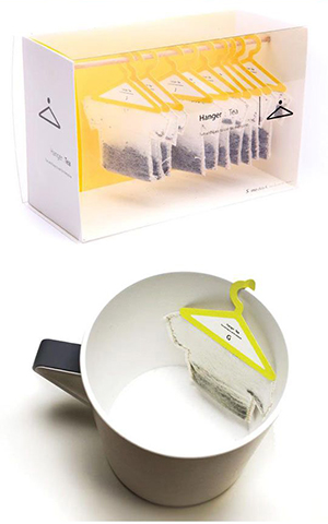 ? ? ? 4. 在設計師的創(chuàng)意下,茶葉包裝盒變成了衣柜,茶包變成了排列整齊的衣服,衣服撐可以直接把茶包掛在杯子上,也是一款兼具趣味性和實用性的食品包裝。